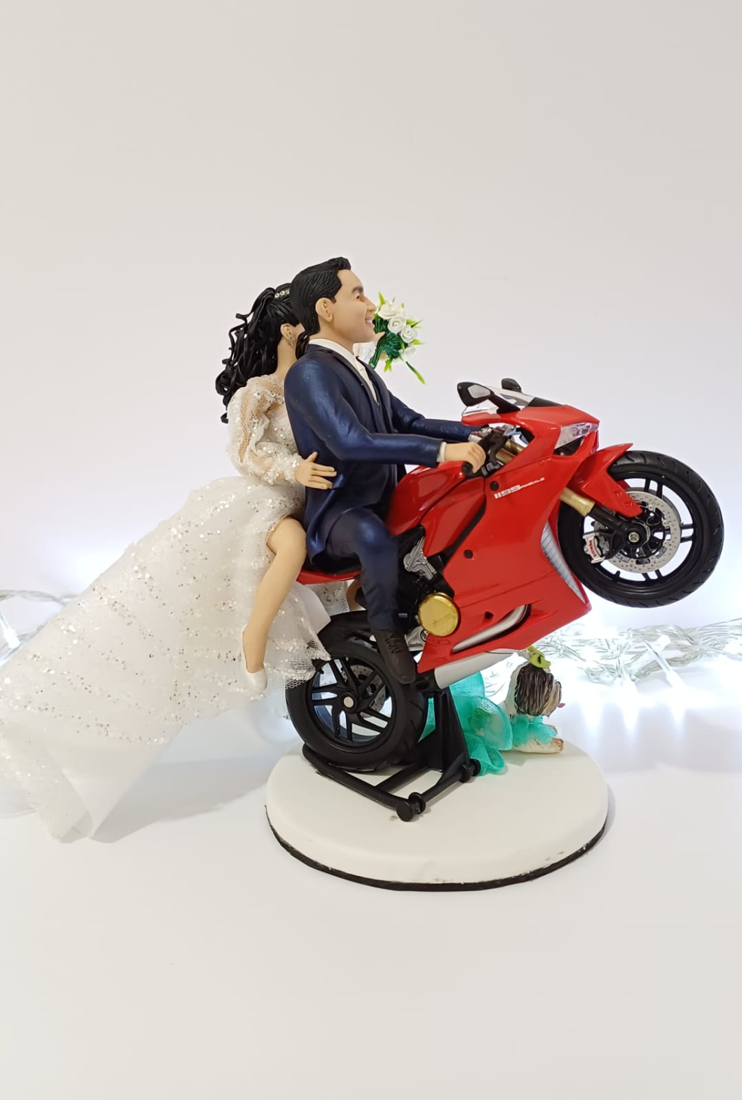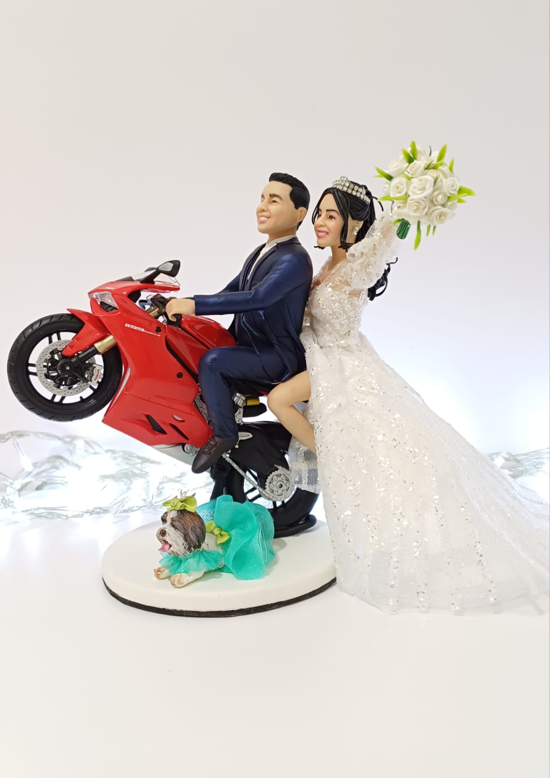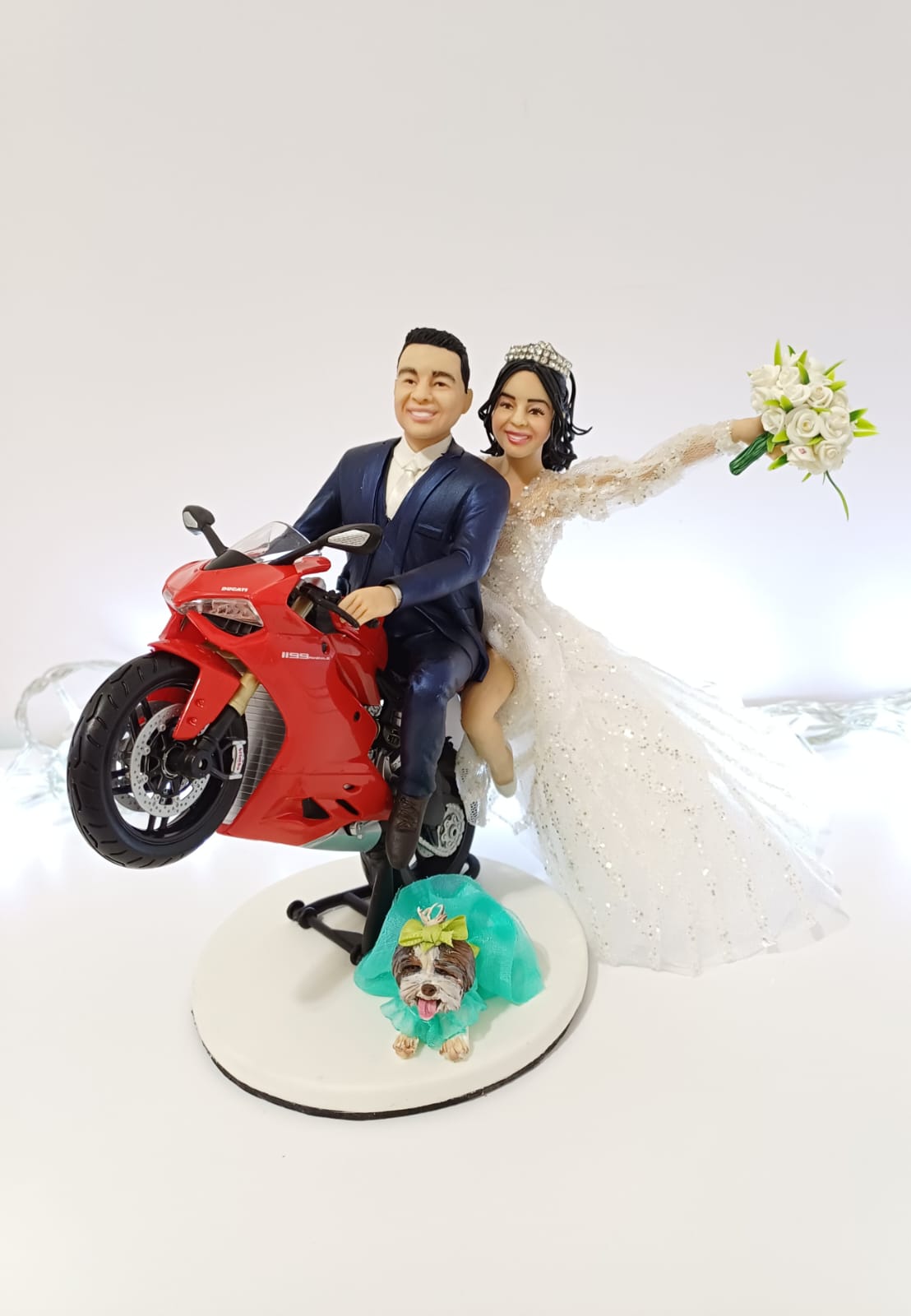 Na cena o casal na moto que faz parte da sua história e a doguinha sempre junto! <3
